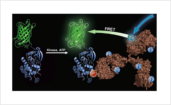 Time-Resolved Fluorescence Resonance Energy Transfer (TR-FRET) is a sensitive and reliable fluorescence-based assay technique that combines the principles of time-resolved fluorescence and FRET to minimize background signal and maximize signal-to-noise ratio. It is widely used in biochemical and biological research for studying molecular interactions, such as protein-protein or protein-DNA interactions, enabling the detection and quantification of these interactions in various assay formats, including kinase large molecule high throughput screening for drug discovery.